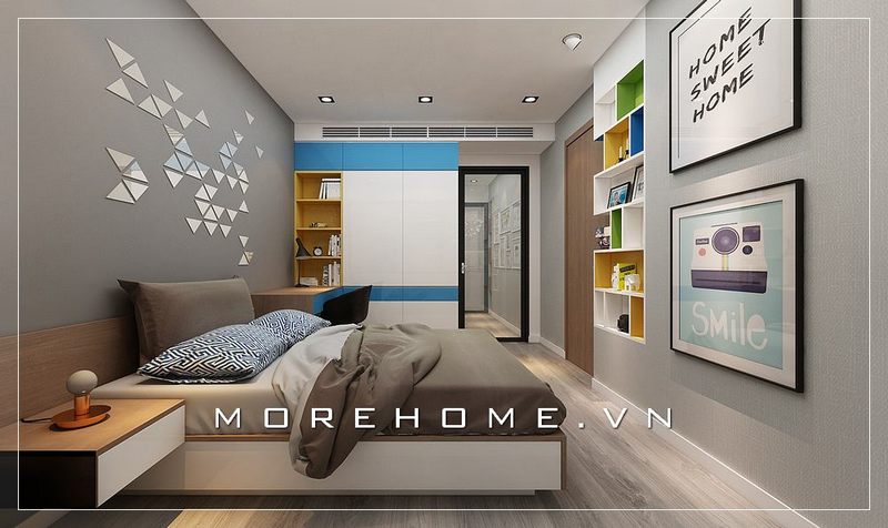 Một trong những ý tưởng độc đáo là sử dụng gỗ công nghiệp để thiết kế giường ngủ đa năng, với ngăn kéo bên dưới giúp tối ưu hóa diện tích và lưu trữ. Điều này không chỉ giúp căn phòng trở nên gọn gàng hơn mà còn thể hiện tính sáng tạo trong việc bố trí nội thất.