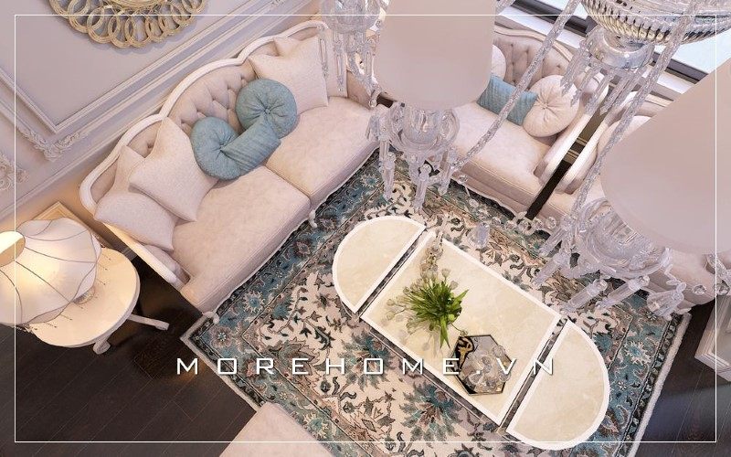 Thiết kế nội thất phòng khách biệt thự có phong cách tân cổ điển tinh tế, sang trọng và đẳng cấp.